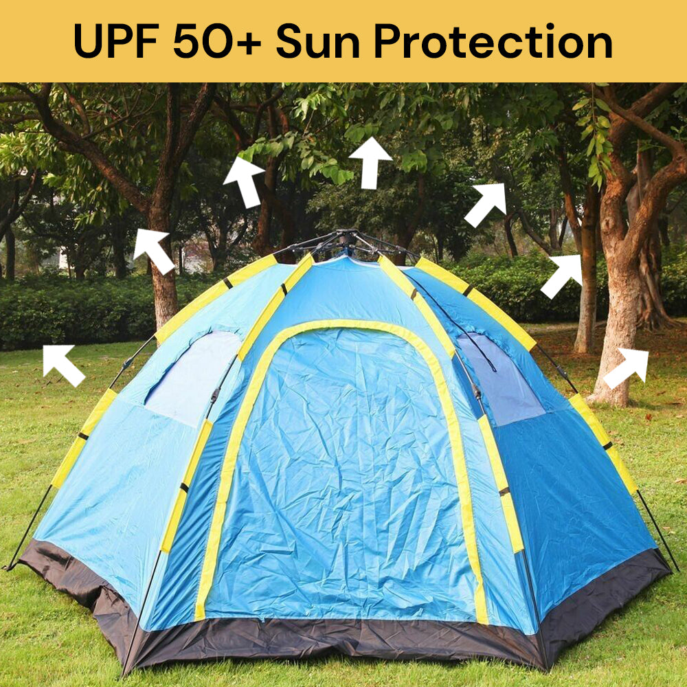190T Silver Coated fabric Anti-UV, UPF 50+, which will protect your family from harmful sun rays. This sun shade tent also can be used as a canopy, beach cabana, beach umbrella, or sun tent. Sun protection for all-day shade at park, beach, lake, fishing, sporting event or just relaxing in the backyard.
