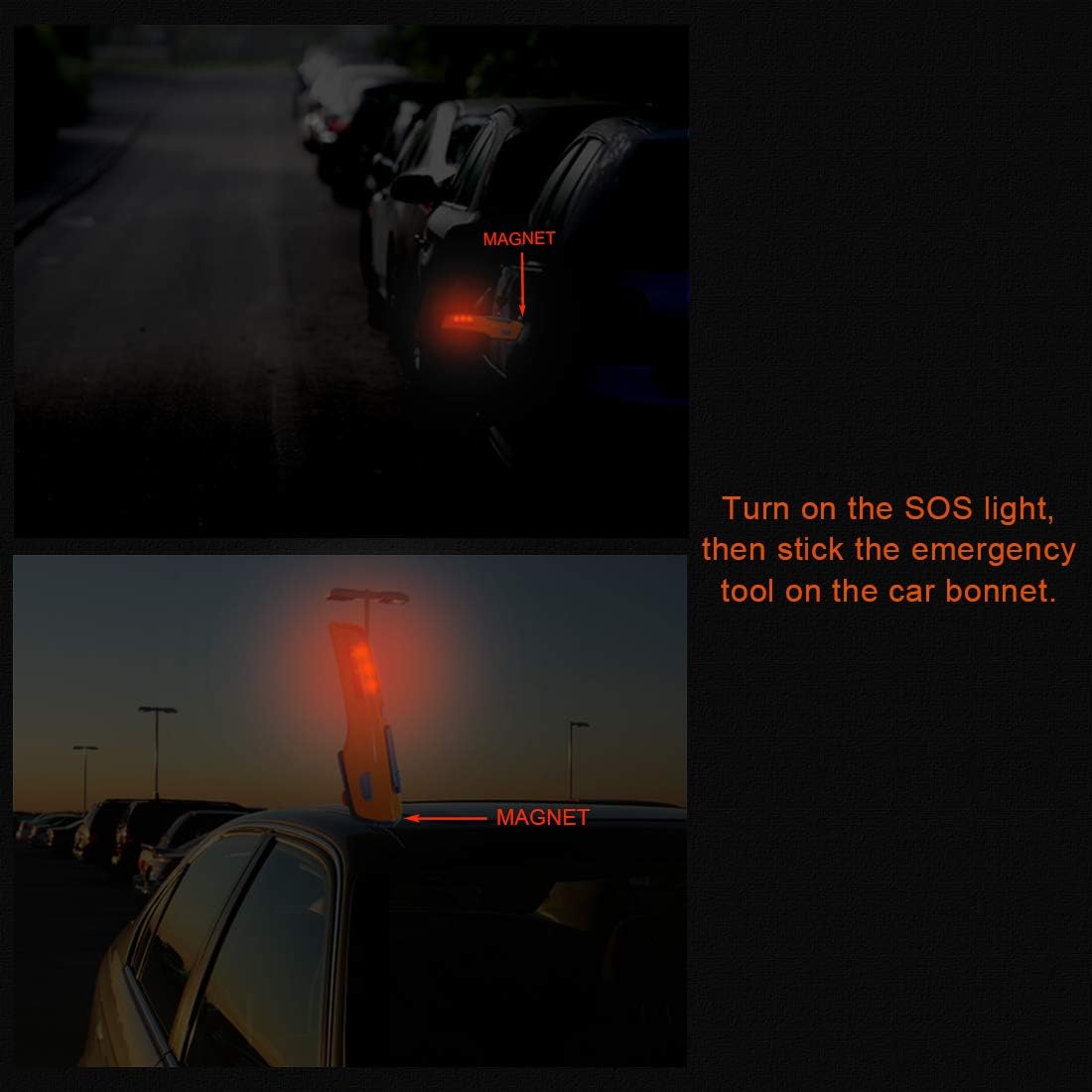 When you are in the dark or an emergency, you can use the car emergency kit with LED light as a lighting tool. The LED light with torch function can also be used as an emergency SOS to ask for help.