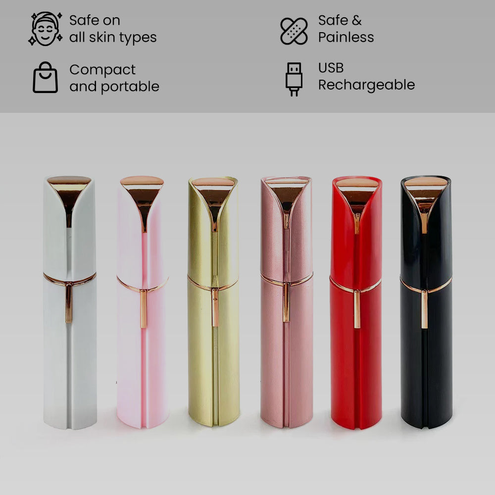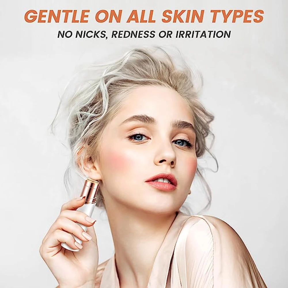Hair removal device for women with its precision micro-knife head, the device targets small, delicate facial areas such as the upper lip, chin and eyebrows, effectively removing even the finest hairs while keeping the skin smooth and hair-free.