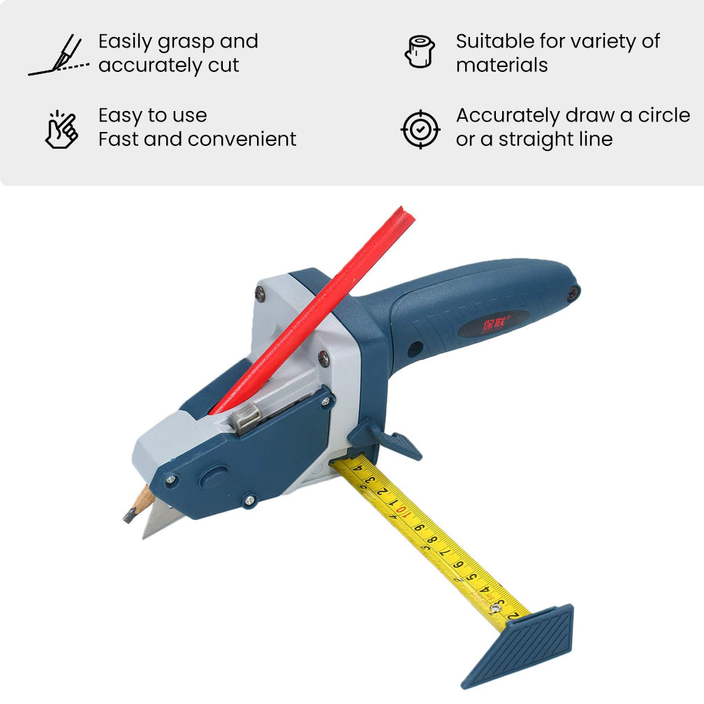 The paper cutter is equipped with a tape measure up to 5 meters long, so you can easily grasp and accurately cut the required size; It is also faster and more convenient to draw circles and straight lines; With the strong locking device, you can easily measure and transfer to any material; One measurement, one cutting, fast cutting, no dust.