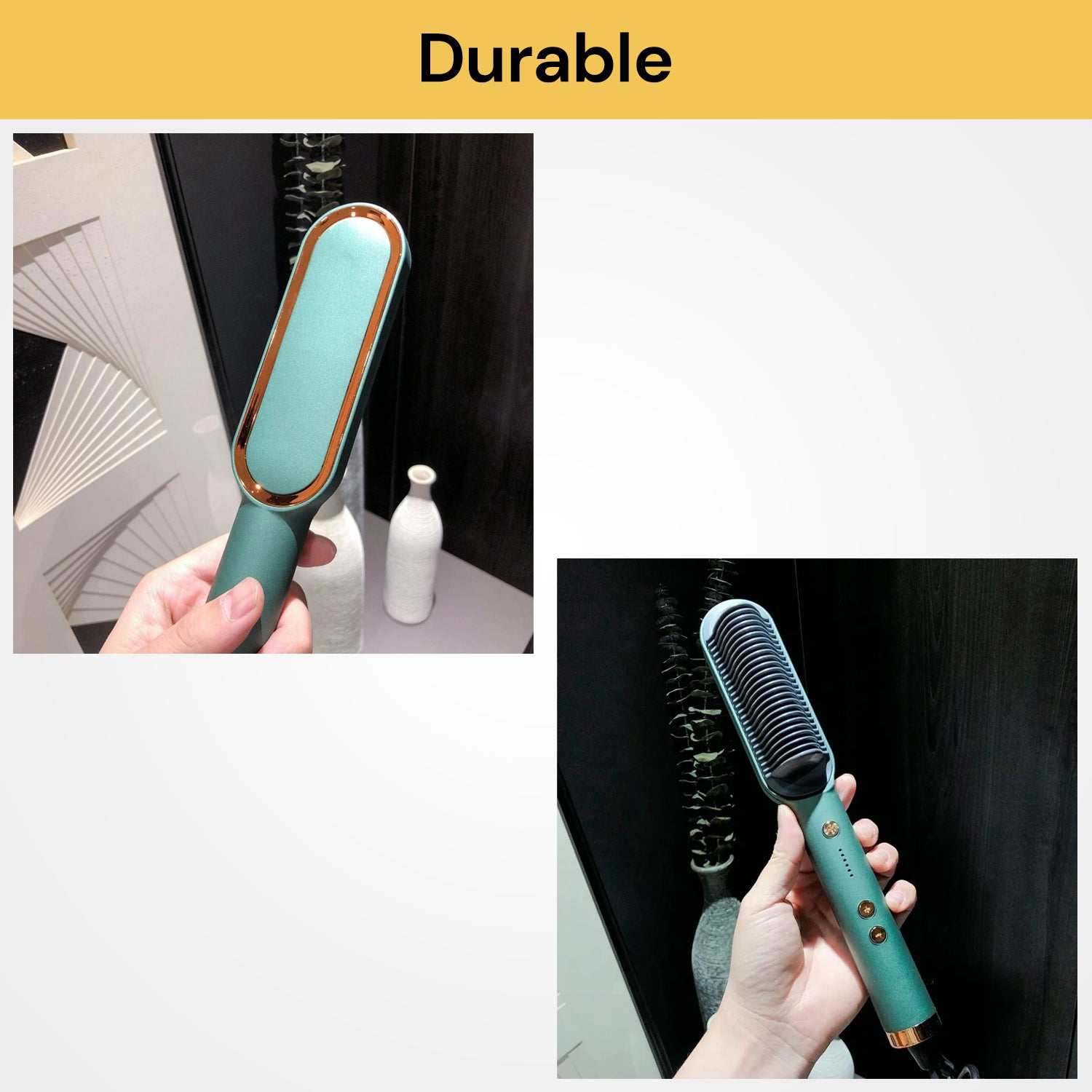The high-density teeth hair straightener brush gives your hair a smooth, silky, natural lustrous look by sealing the hair cuticles and reducing split ends. very quiet, works very well and is easier to use than a traditional straightener while saving you precious time.