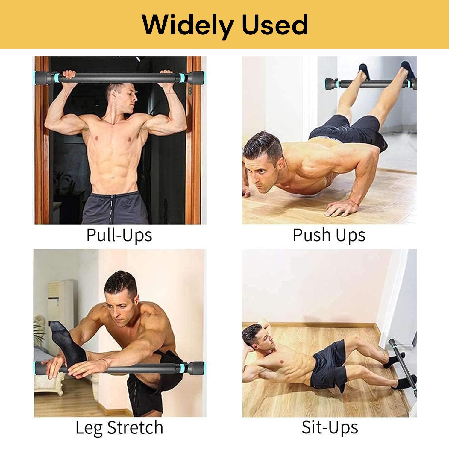 Two excellent quality thickening non-slip pads are attached on both sides of the door pull-up bar, combine with a rhombus support structure which can firmly stick the stretch bar will firmly stick on the wall or door without any screws and drilling to protect your walls and door frames.
