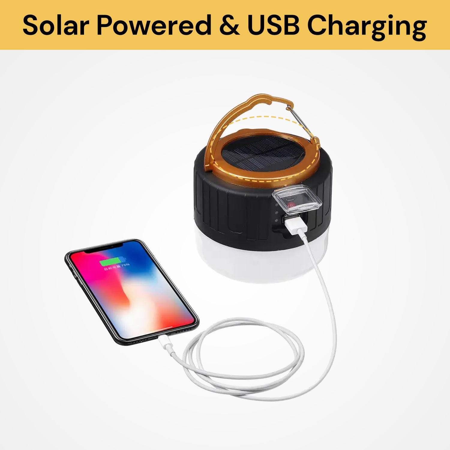 ☀️ Solar & USB Charging: Solar panel is located on the top of the lamp.